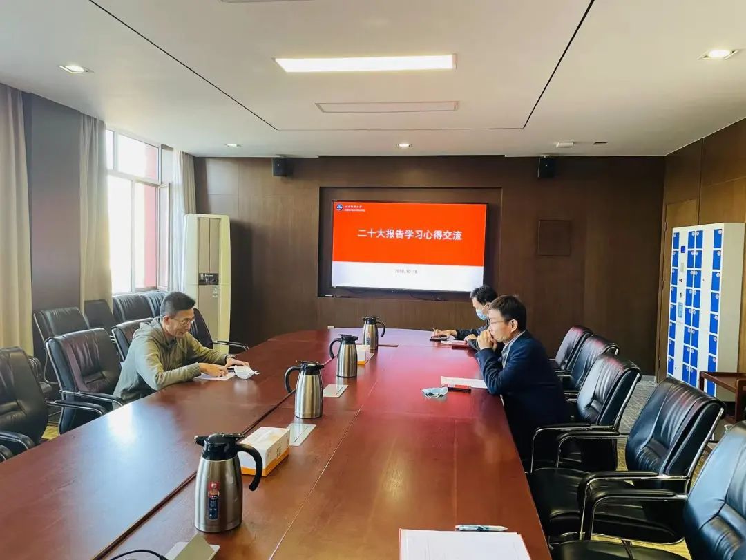10月18日,人事处党支部组织党员集中学习党的二十大精神,并结合本职工作交流心得体会。