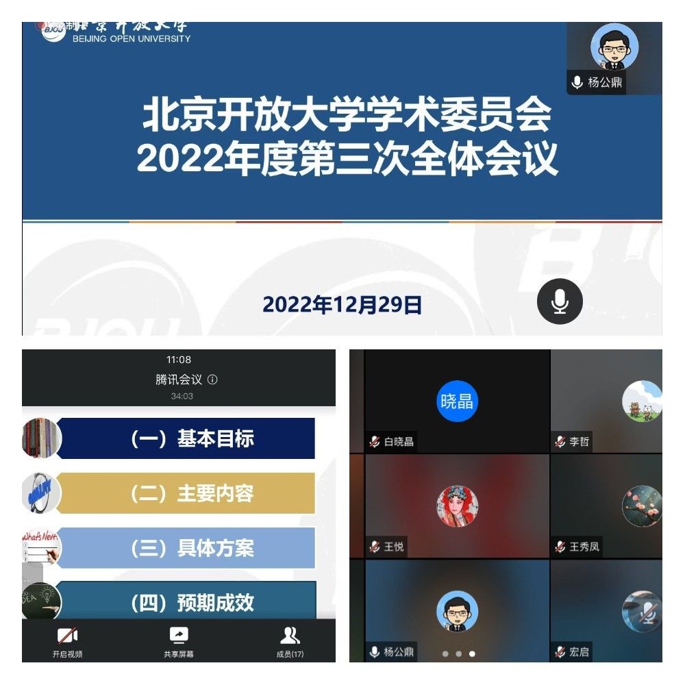 杨公鼎指出,科研部门要加强对该计划及方案的宣传,同时二级学院和学术委员们要充分发挥作用,加强鼓励引导,动员教师积极参与。他对学校工作提出几点要求:第一,建设一流开放大学是学校的发展目标,需要一流的人才、一流的成果作为支撑,“无科研不大学”,在国家教育、科技、人才融合发展、一体推进的战略框架下,学校要充分发挥科研在人才发展和成果产出中的重要驱动与支撑作用。第二,要加大对教师的支持和培育力度。首先要围绕学校发展中的重点、难点问题,在研究选题和方向上加强统筹指导;其次,要搭建平台,建设团队,充分发挥高水平人才的引领示范作用;再次,要加强培养,提供帮助,学校目前学术发展基础较为薄弱,需要进一步加强对教师的培养培训,为其提供访学、参加学术活动和学术会议的多方面支持,为其成果产出提供相关资助和奖励;此外,要对思政课建设、思政教师的发展给予重点关注和支持。第三,统筹好疫情防控和学校事业发展。步入抗疫新阶段,要准确把握当前政策要求和外部形势,加强部门间协调配合,统筹落实防控措施和年末各项工作,通过线上抓、抓线上,确保学校教育教学平稳有序推进。