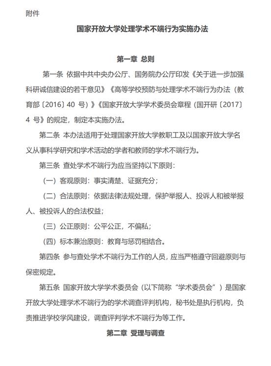 国家开放大学处理学术不端行为实施方法