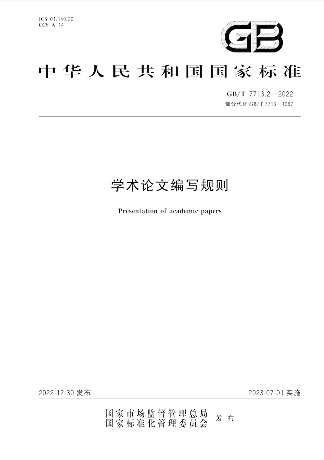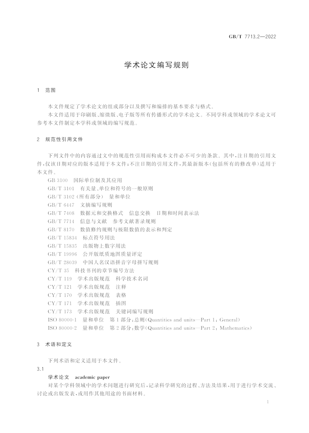 学术论文编写规则(GB/T 7713.2—2022)