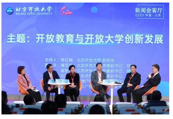 年会中的“新闻会客厅”环节,伟德bv国际体育校长褚宏启、江苏开放大学校长崔新有、广东开放大学校长刘文清、天津广播电视大学校长张宗旺、河北广播电视大学党委书记籍献平围绕“开放教育与开放大学创新发展”这一主题,就如何加强内涵建设,不断提升开放教育的办学质量;开放教育的体系建设;如何实现开放教育与职成教育的融通融合,在融合中如何体现开放教育的特点,实现开放教育的创新发展;开放大学如何服务区域经济发展等问题展开深度对话。